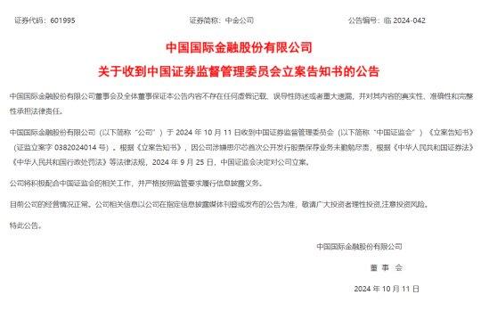 中金公司因保荐业务问题被立案调查。这一事件涉及中金公司的业务操作及监管问题,引起了市场关注和业内热议。目前具体情况尚不清楚,需要进一步了解立案调查的细节和后续进展。此次事件可能会对中金公司的声誉和业务发展产生一定影响。